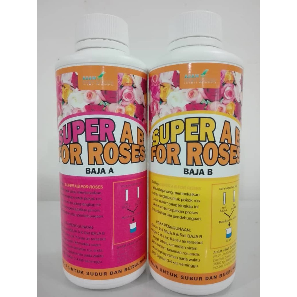 Baja yang mempunyai nutrien lengkap yang sesuai untuk semua jenis tanaman berakar tunjang seperti pokok yang berbuah, sayuran, berbunga dan seumpamanya. Untuk beli baja ab dalam bentuk cecair, boleh whatsapp saya akh hanis.